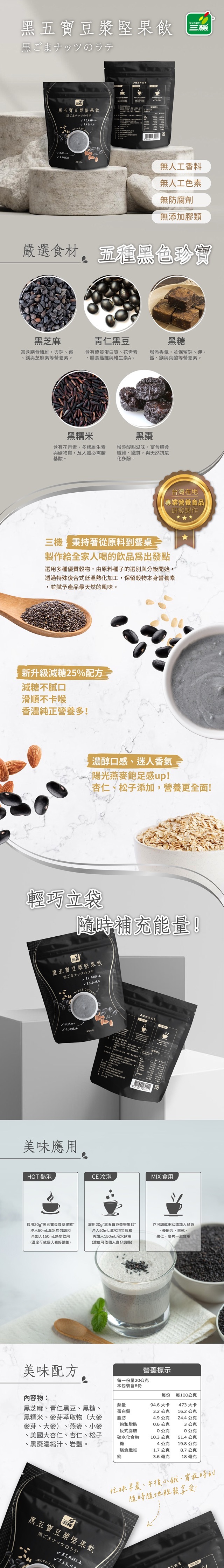 過敏原:本產品含大豆、芝麻、堅果、麸質及其製品。
